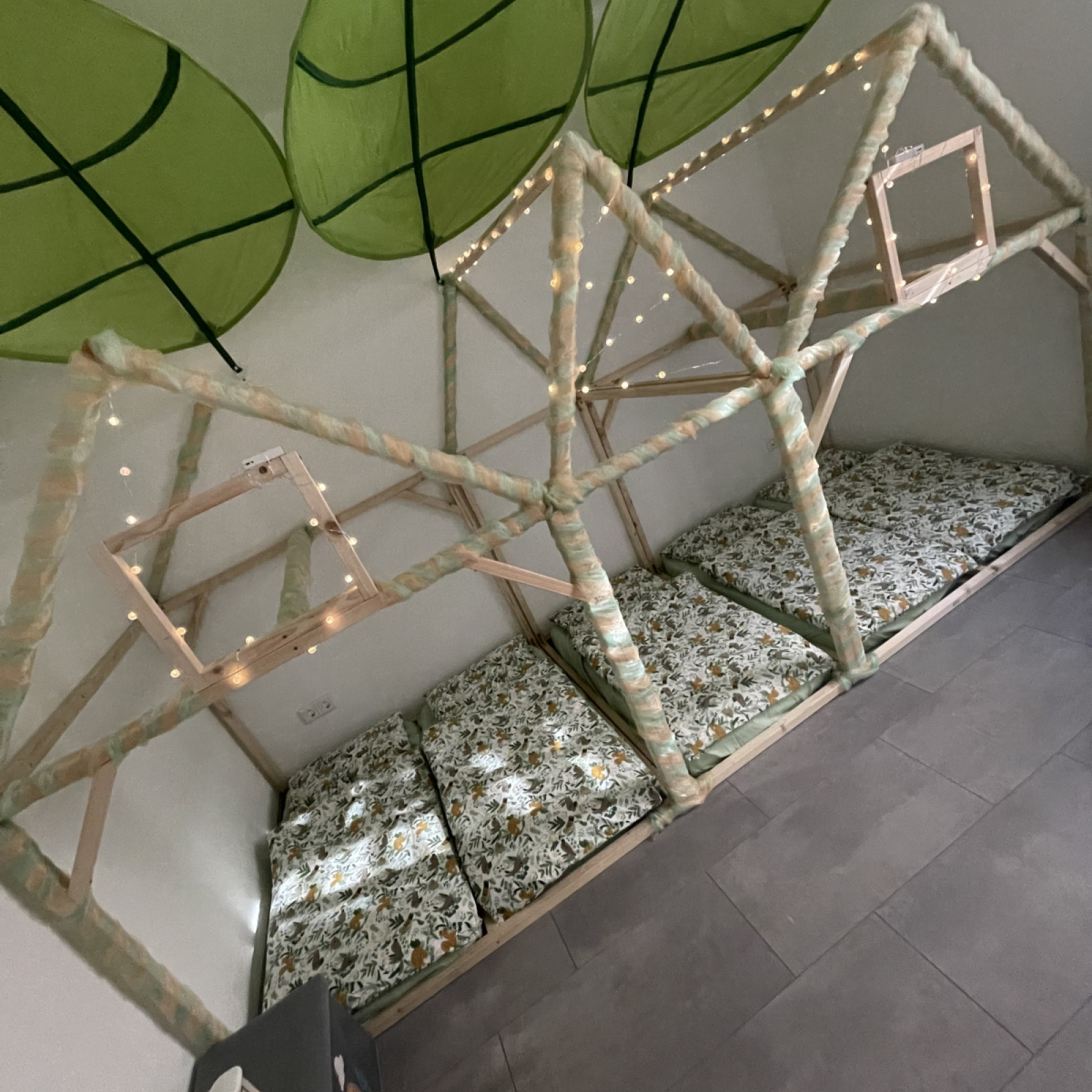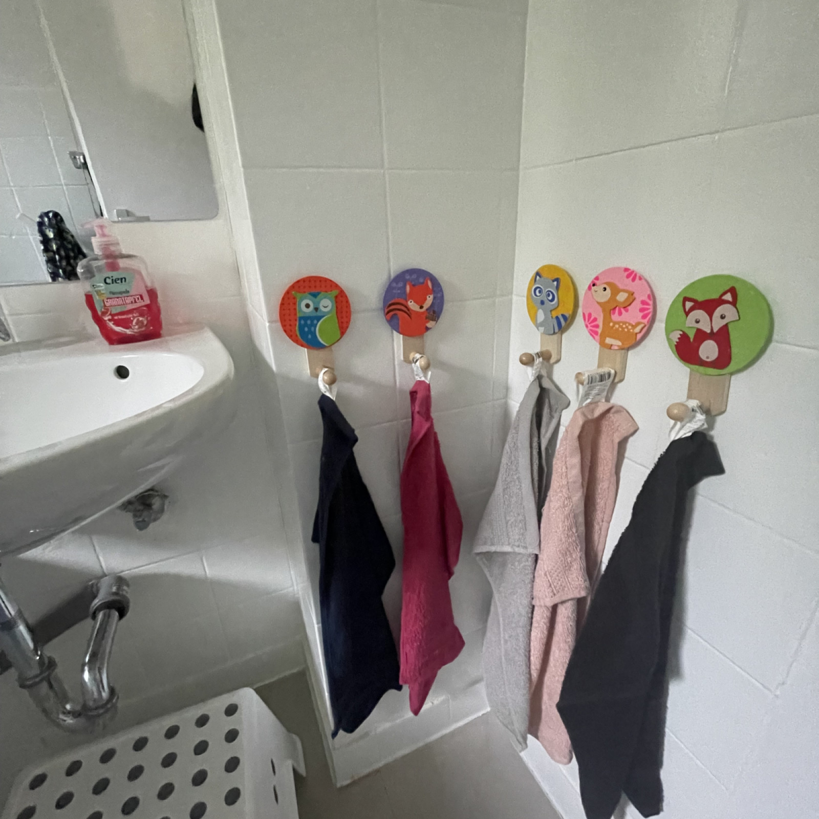 Kinder haben besondere Bedürfnisse an die Einrichtung: der Waschbereich hat einen Wickeltisch, niedrige Waschbecken und eine separate Toilette. Für den Mittagsschlaf oder um sich auszuruhen gibt es den Schlafbereich mit einer eigenen Matratze für jedes Kind. Die Küche ist besonders wichtig: hier bereiten wir – auch oft gemeinsam mit den Kindern – die Mahlzeiten zu und lassen es uns zusammen am großen Tisch schmecken. In den Räumen gibt es verschiedene Bereiche zum Basteln oder Spielen – mache Bereiche werden auch für verschiedene Anlässe umgeräumt. In den Räumen wird natürlich nicht geraucht.
