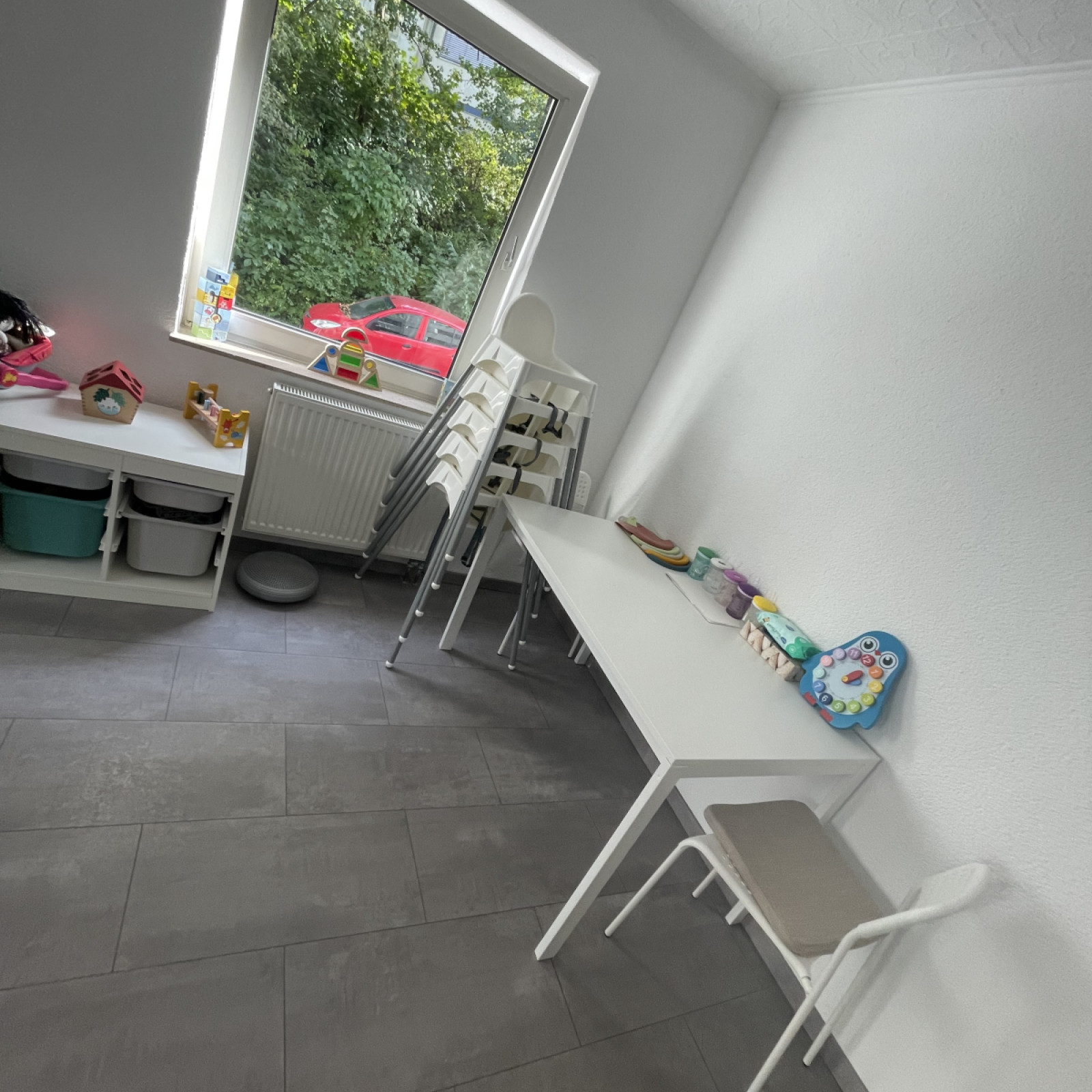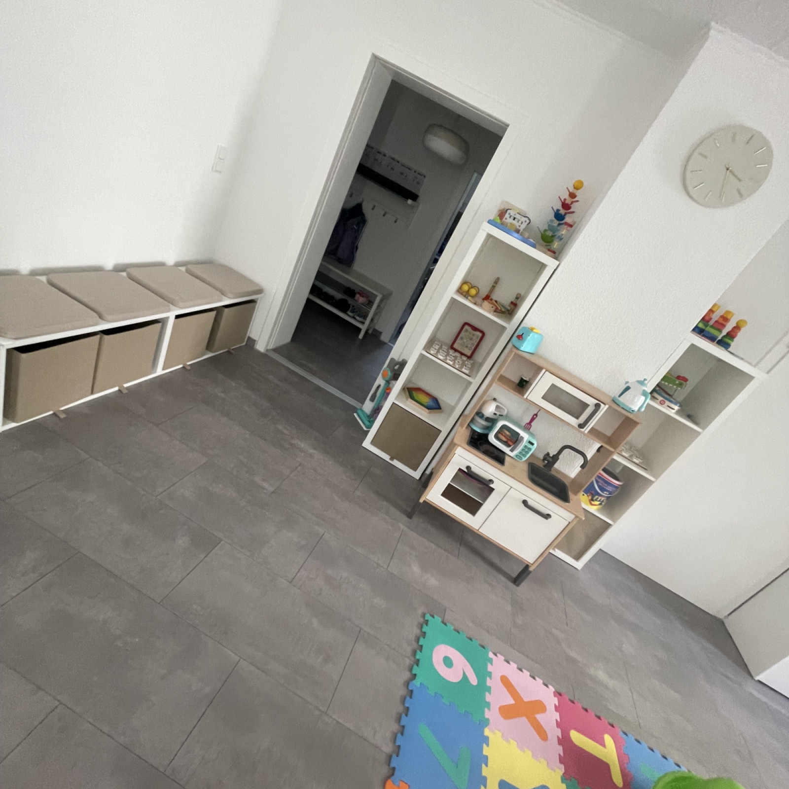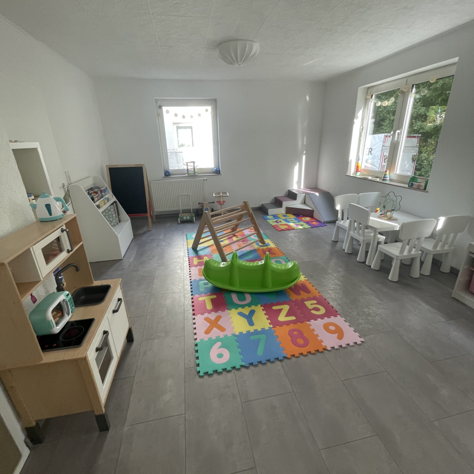 Die Räume meiner Kindertagespflege bieten den Kindern viel Platz zum Toben, Spielen und Schlafen. Es stehen 2 liebevoll eingerichtete Räume mit einer Fläche von insgesamt ca. 60 Quadratmetern für vielfältige Entdeckungen bereit. Die Kindertagespflege findet in angemieteten Räumen statt. Die Einrichtung ist modern und mit der kindgerechten Ausstattung fühlen wir uns hier jeden Tag wohl. Sicherheit ist beim Spielen wichtig und so sind die Räume mit verschiedenen Features ausgestattet, die unbekümmertes Spielen ermöglichen.